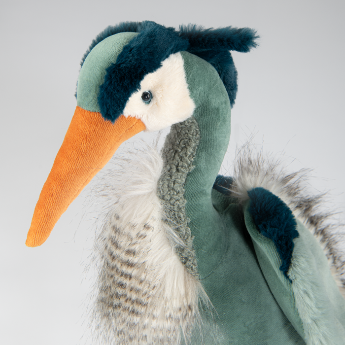 This soft heron plush toy is an elegant bird stuffed animal, with glittery legs and unique detailing. This unique bird soft toy for kids also makes a charming gift for toddlers and preschoolers, offering comfort, imagination, and endless cuddly adventures.