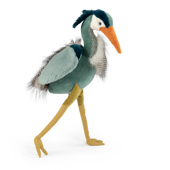 What a gorgeous heron! After a majestic flight, it swoops down to rest right by your side. With its wonderfully soft fur, shimmering details, and long glittery legs, this elegant bird is the perfect travel buddy for little explorers who dream of big adventures. Gentle, whimsical, and full of charm, it brings imagination to life wherever it goes.